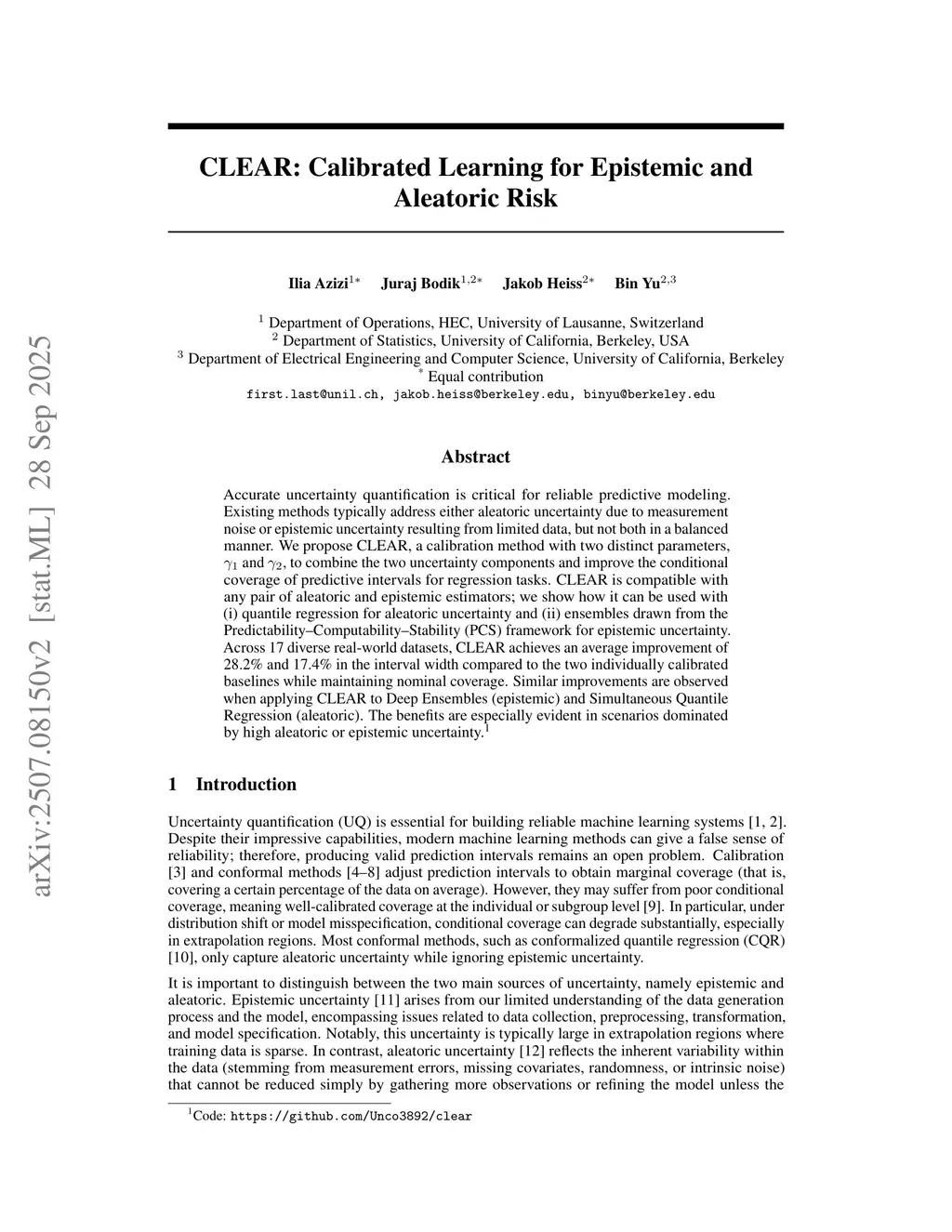CLEAR: Calibrated Learning for Epistemic and Aleatoric Risk