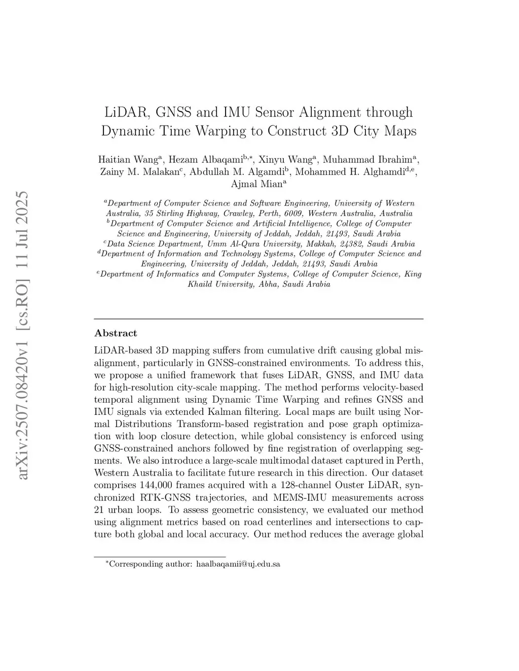 LiDAR, GNSS and IMU Sensor Alignment through Dynamic Time Warping to Construct 3D City Maps