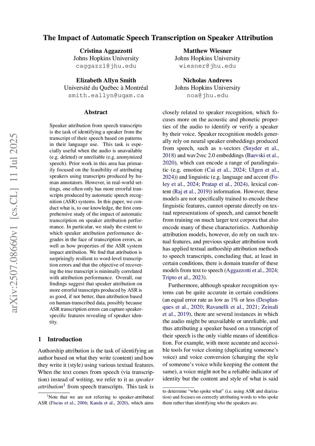The Impact of Automatic Speech Transcription on Speaker Attribution