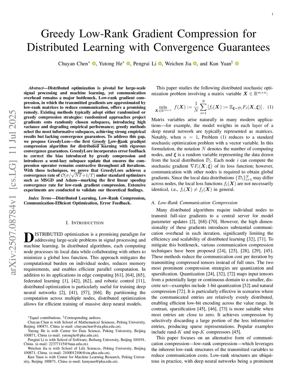 Greedy Low-Rank Gradient Compression for Distributed Learning with Convergence Guarantees