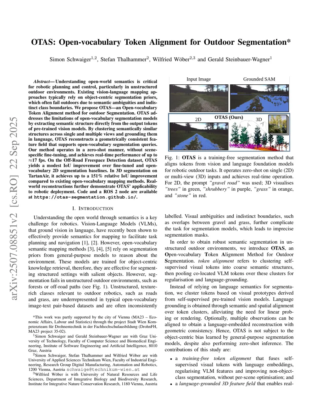 OTAS: Open-vocabulary Token Alignment for Outdoor Segmentation