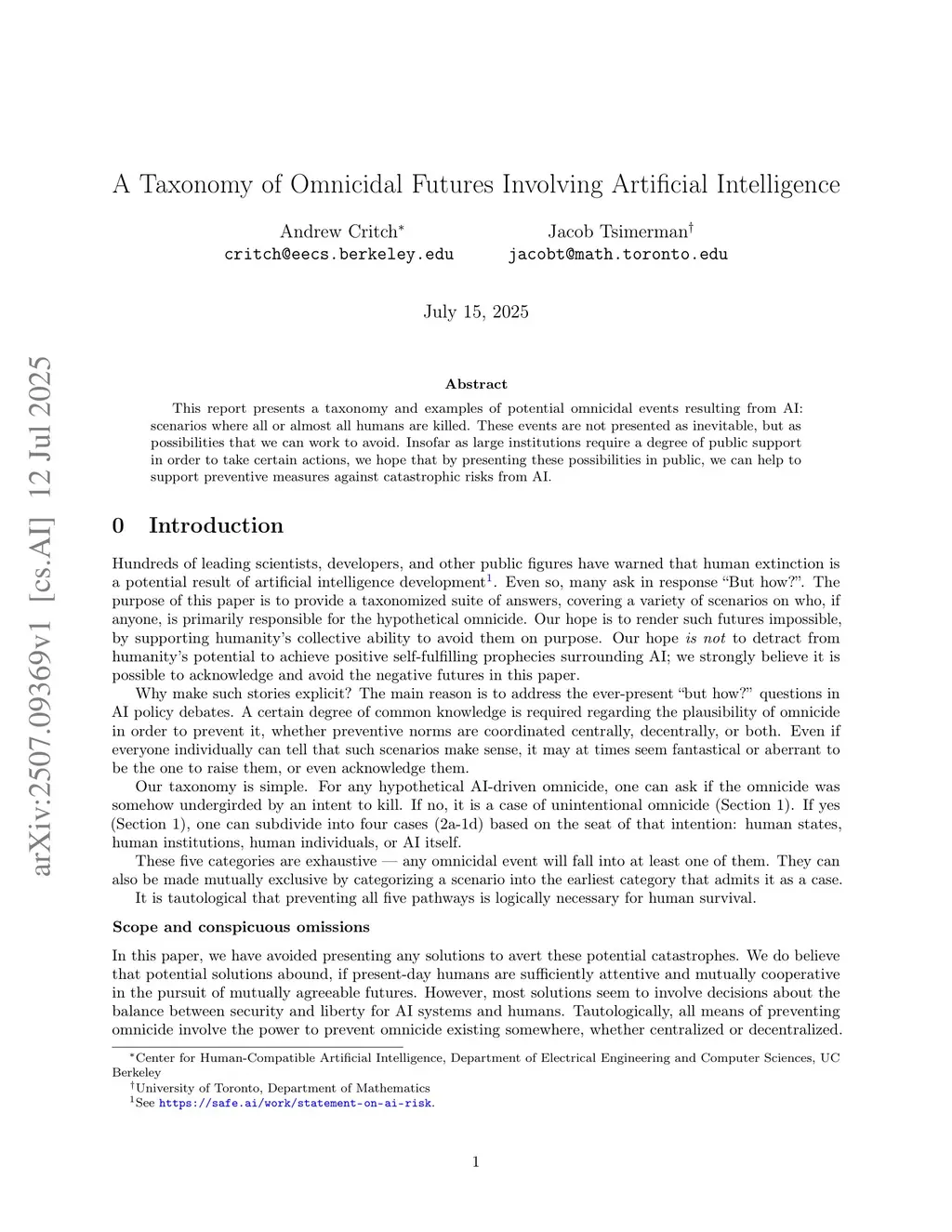 A Taxonomy of Omnicidal Futures Involving Artificial Intelligence