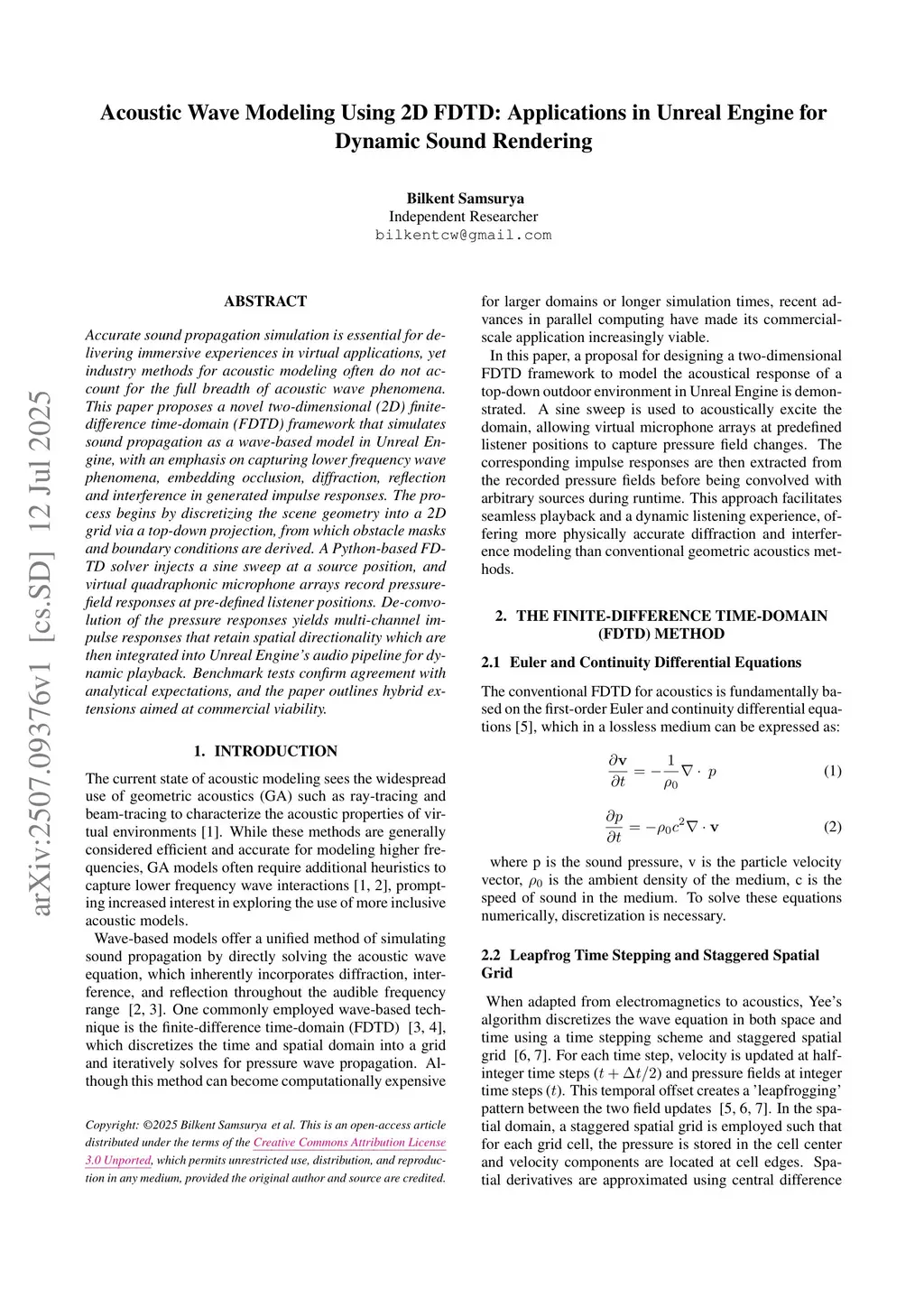 Acoustic Wave Modeling Using 2D FDTD: Applications in Unreal Engine For Dynamic Sound Rendering