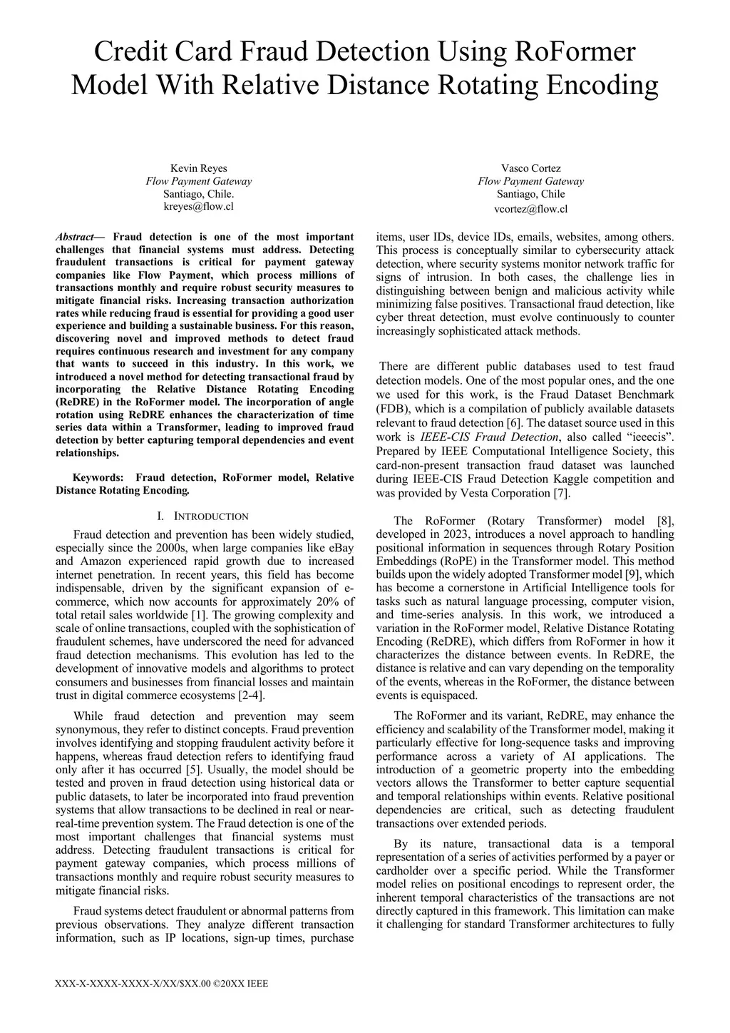 Fraud detection is one of the most important challenges that financial systems must address. Detecting fraudulent transactions is critical for payment gateway companies like Flow Payment, which process millions of transactions monthly and require robust security measures to mitigate financial risks. Increasing transaction authorization rates while reducing fraud is essential for providing a good user experience and building a sustainable business. For this reason, discovering novel and improved methods to detect fraud requires continuous research and investment for any company that wants to succeed in this industry. In this work, we introduced a novel method for detecting transactional fraud by incorporating the Relative Distance Rotating Encoding (ReDRE) in the RoFormer model. The incorporation of angle rotation using ReDRE enhances the characterization of time series data within a Transformer, leading to improved fraud detection by better capturing temporal dependencies and event relationships.