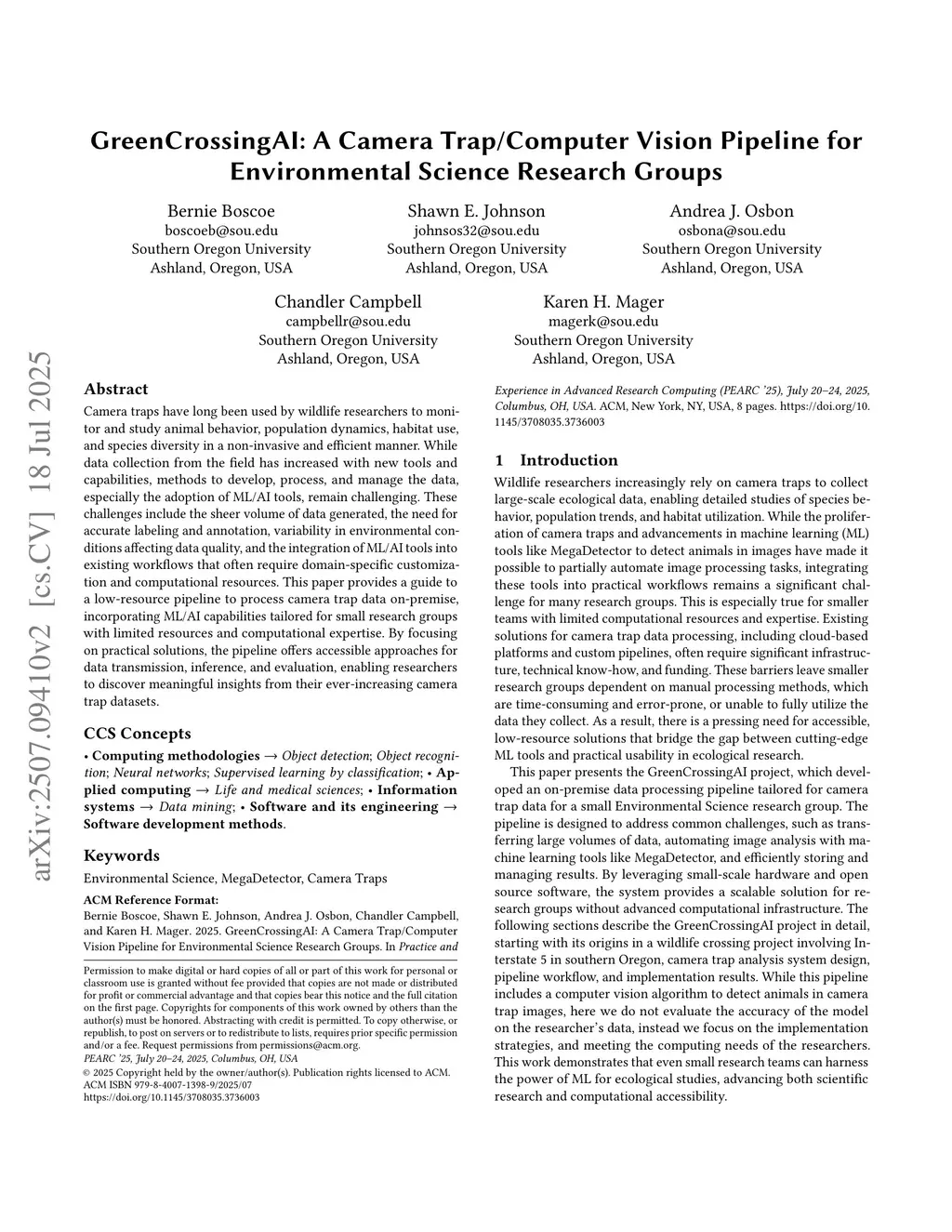 GreenCrossingAI: A Camera Trap/Computer Vision Pipeline for Environmental Science Research Groups