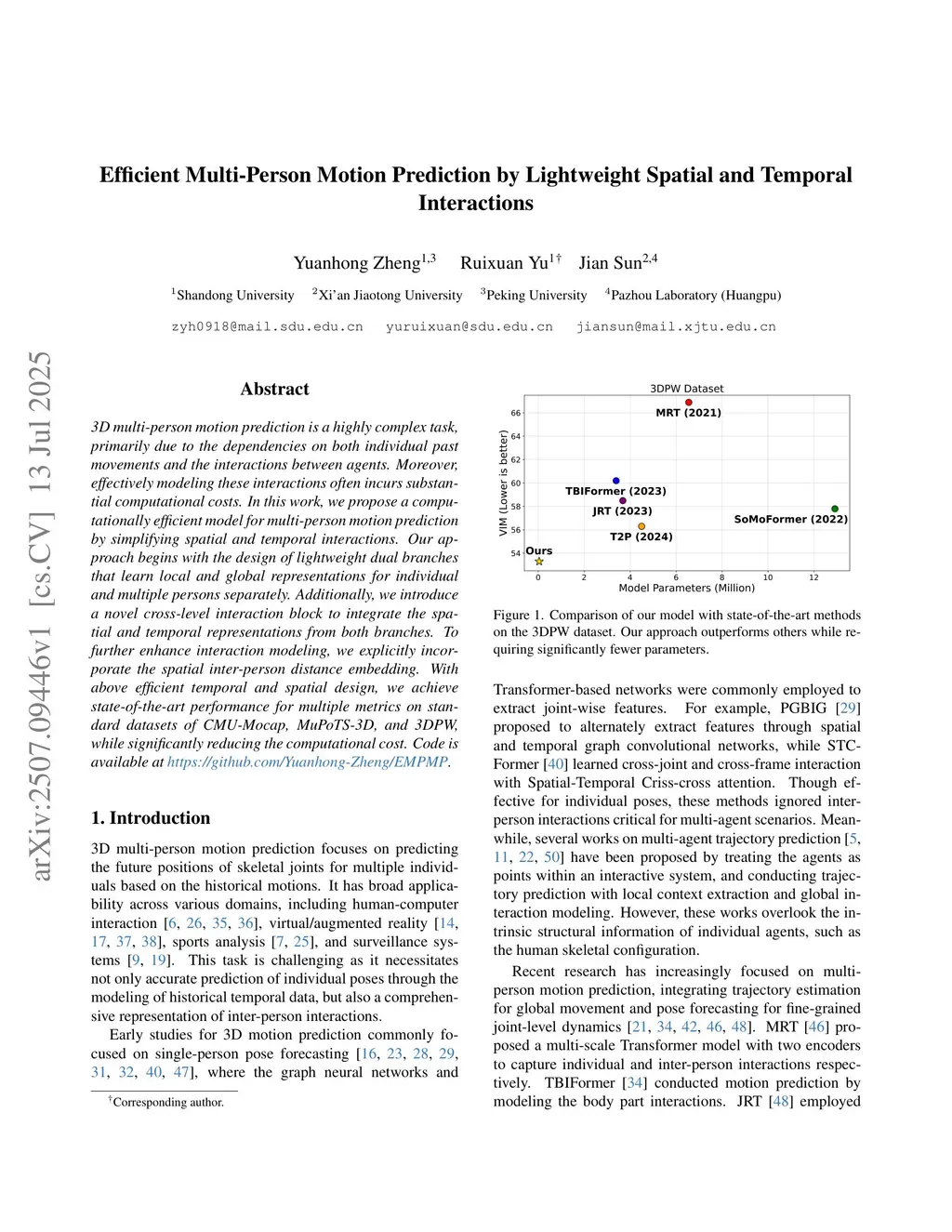 Efficient Multi-Person Motion Prediction by Lightweight Spatial and Temporal Interactions