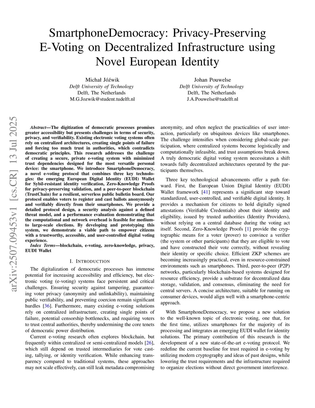SmartphoneDemocracy: Privacy-Preserving E-Voting on Decentralized Infrastructure using Novel European Identity