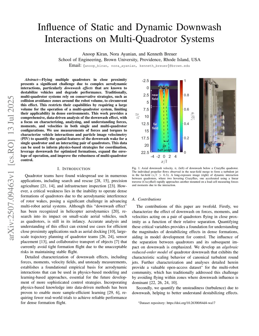 Flying multiple quadrotors in close proximity presents a significant challenge due to complex aerodynamic interactions, particularly downwash effects that are known to destabilize vehicles and degrade performance. Traditionally, multi-quadrotor systems rely on conservative strategies, such as collision avoidance zones around the robot volume, to circumvent this effect. This restricts their capabilities by requiring a large volume for the operation of a multi-quadrotor system, limiting their applicability in dense environments. This work provides a comprehensive, data-driven analysis of the downwash effect, with a focus on characterizing, analyzing, and understanding forces, moments, and velocities in both single and multi-quadrotor configurations. We use measurements of forces and torques to characterize vehicle interactions, and particle image velocimetry (PIV) to quantify the spatial features of the downwash wake for a single quadrotor and an interacting pair of quadrotors. This data can be used to inform physics-based strategies for coordination, leverage downwash for optimized formations, expand the envelope of operation, and improve the robustness of multi-quadrotor control.