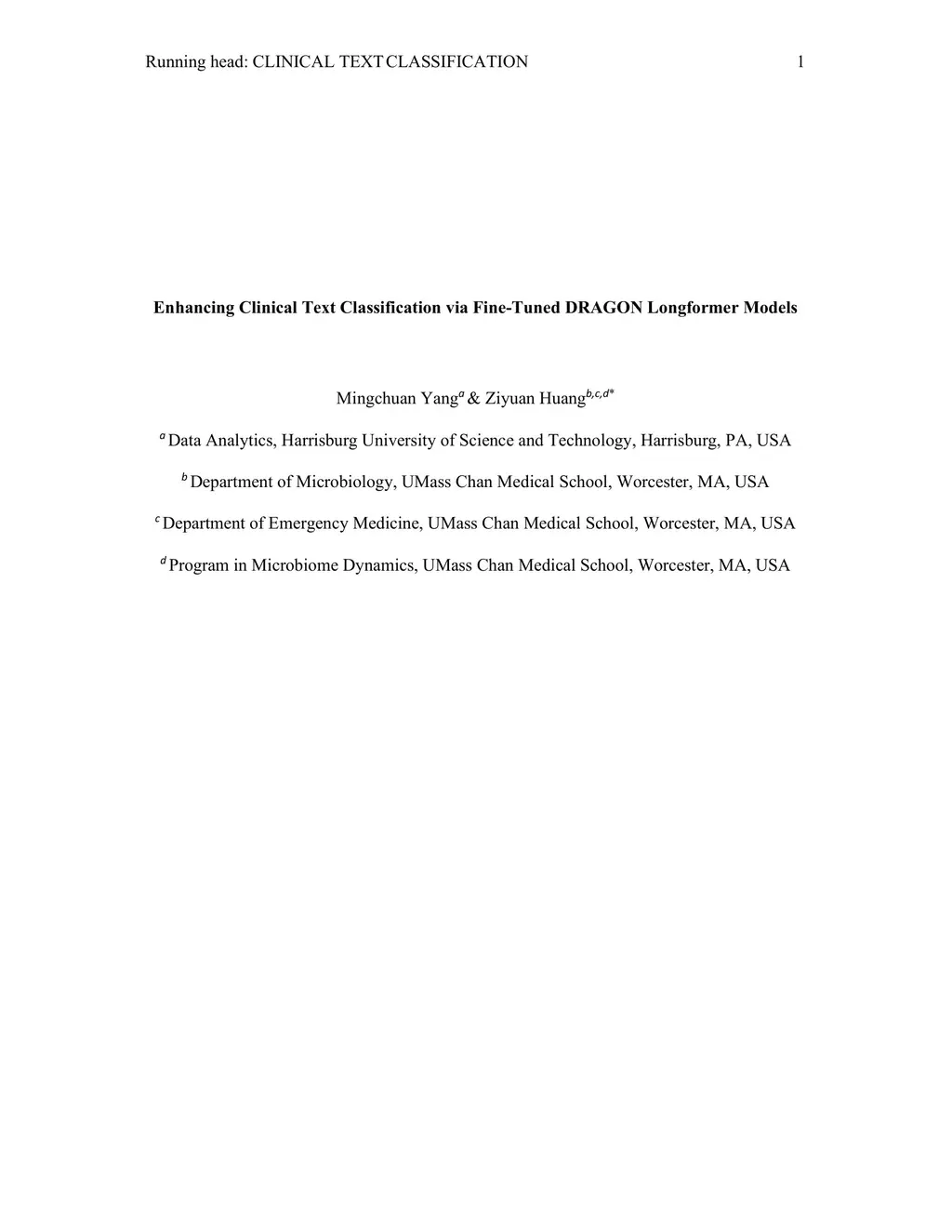 Enhancing Clinical Text Classification via Fine-Tuned DRAGON Longformer Models