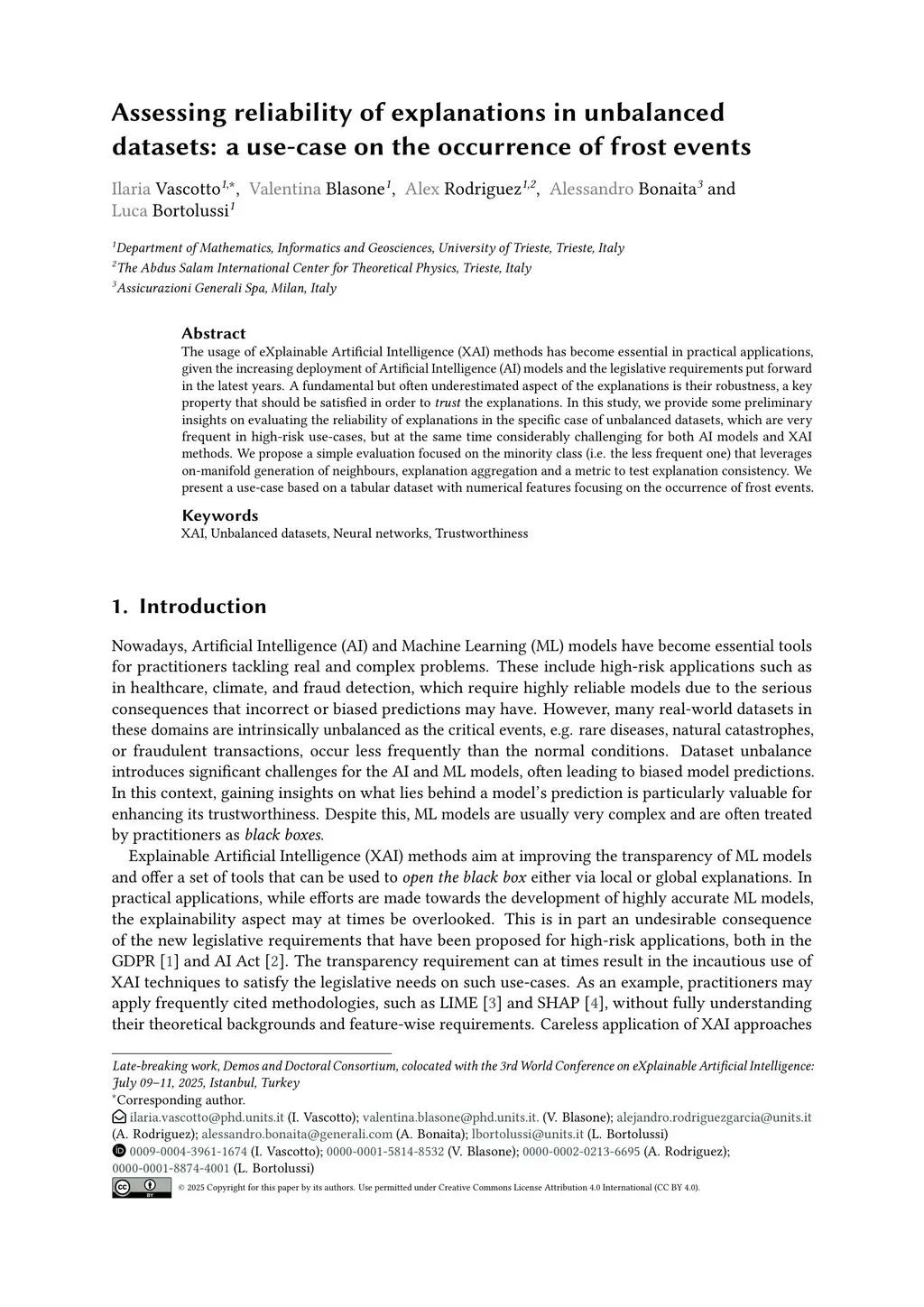 Assessing reliability of explanations in unbalanced datasets: a use-case on the occurrence of frost events