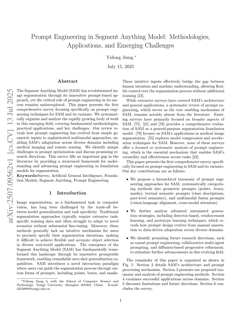 Prompt Engineering in Segment Anything Model: Methodologies, Applications, and Emerging Challenges