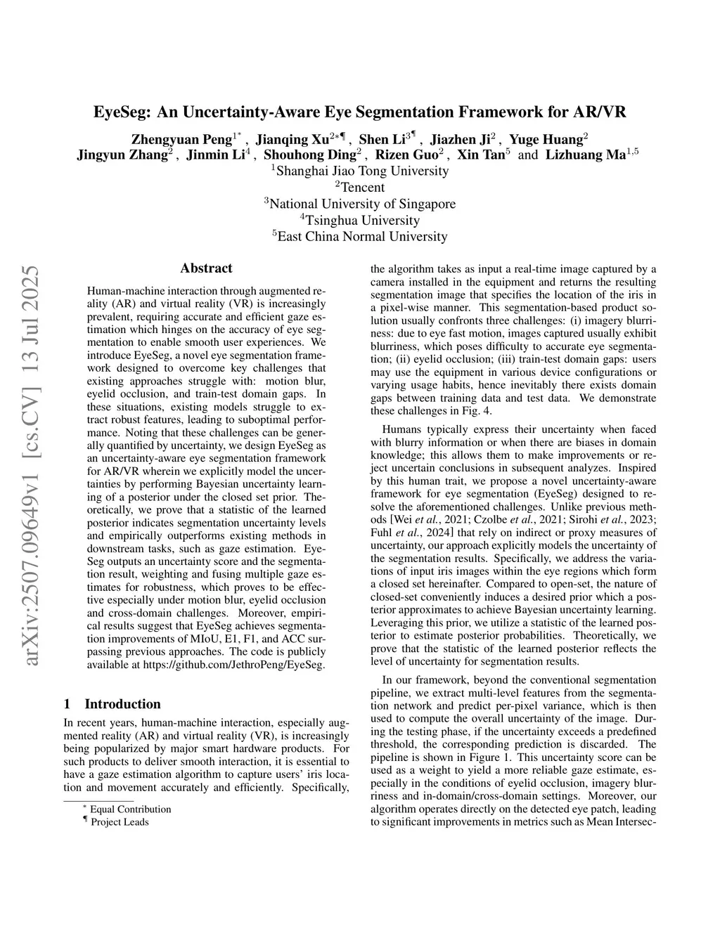 EyeSeg: An Uncertainty-Aware Eye Segmentation Framework for AR/VR