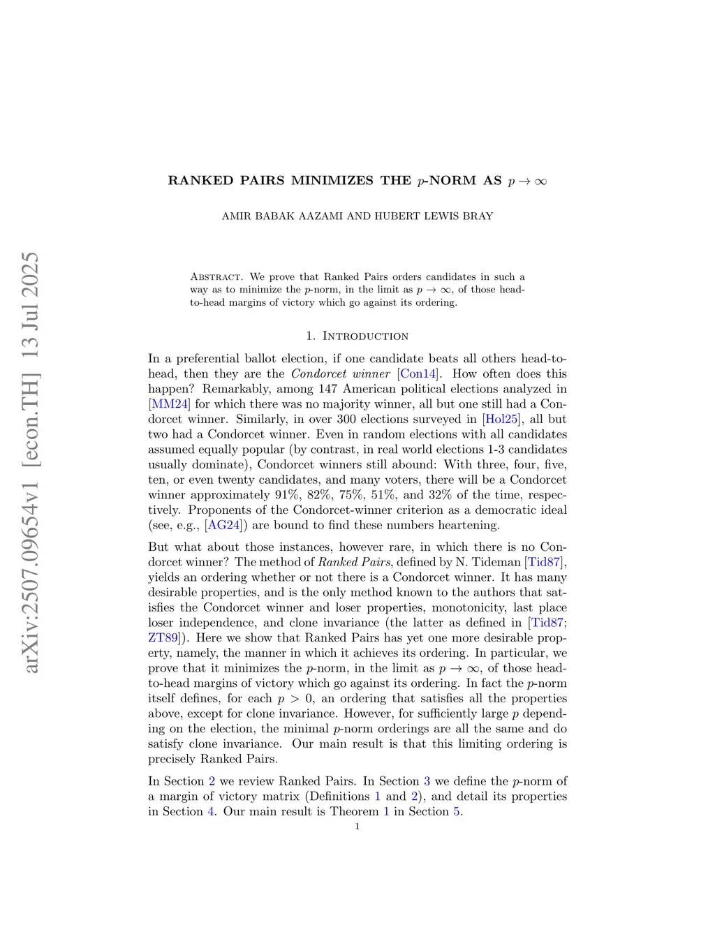 Ranked Pairs minimizes the -norm as