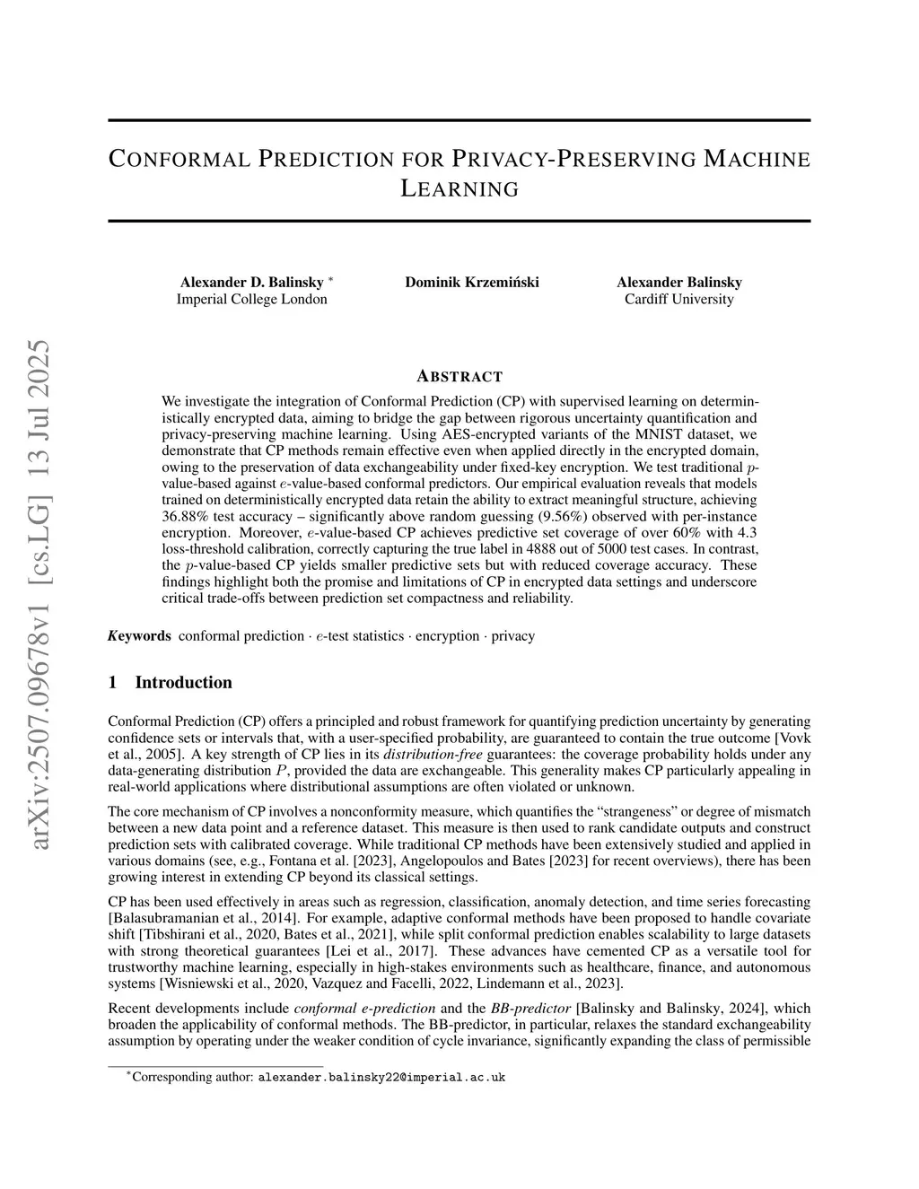 Conformal Prediction for Privacy-Preserving Machine Learning
