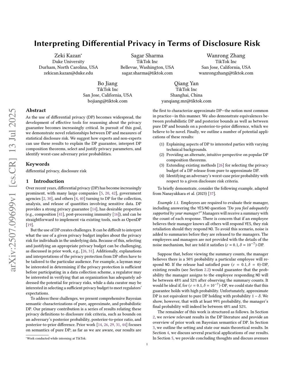 As the use of differential privacy (DP) becomes widespread, the development of effective tools for reasoning about the privacy guarantee becomes increasingly critical. In pursuit of this goal, we demonstrate novel relationships between DP and measures of statistical disclosure risk. We suggest how experts and non-experts can use these results to explain the DP guarantee, interpret DP composition theorems, select and justify privacy parameters, and identify worst-case adversary prior probabilities.