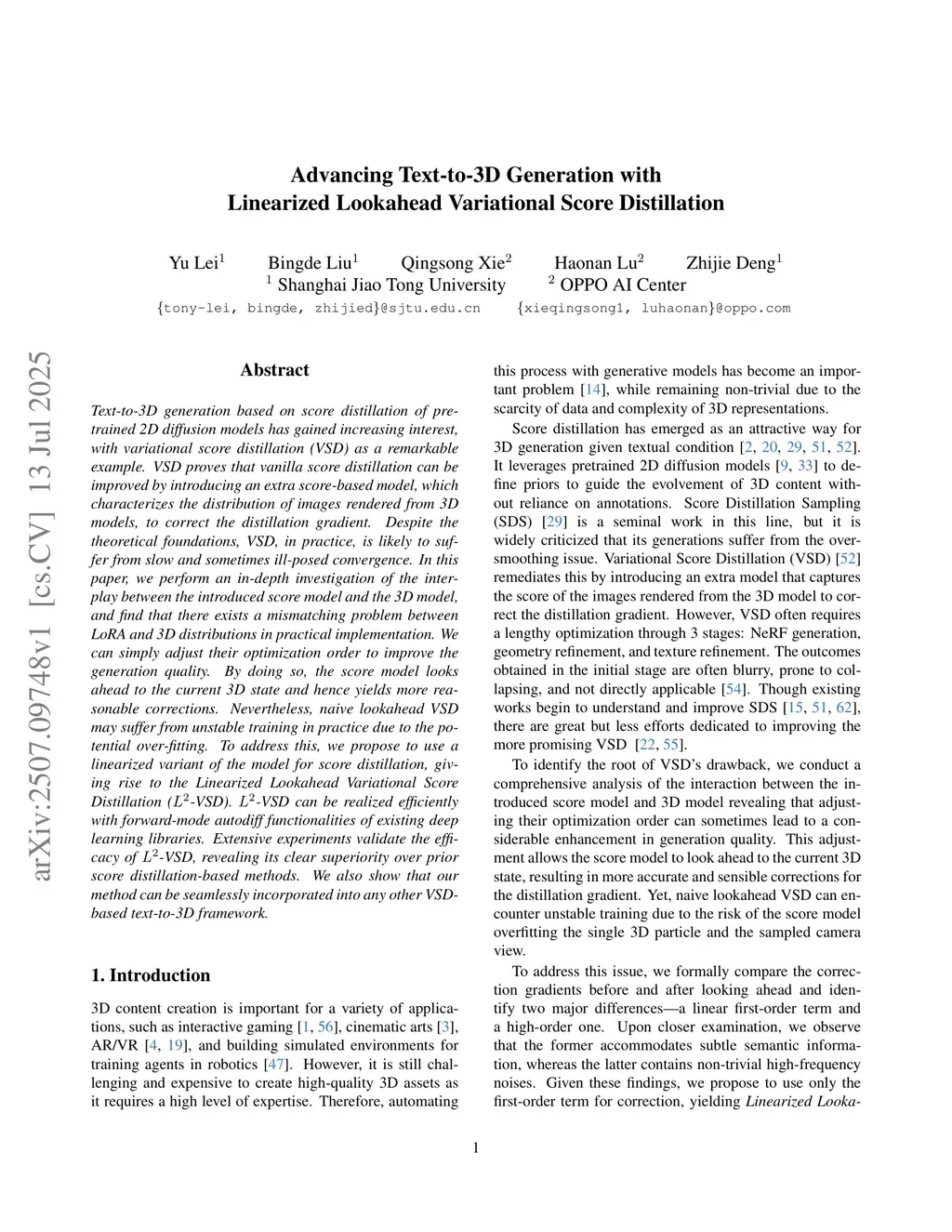 Advancing Text-to-3D Generation with Linearized Lookahead Variational Score Distillation