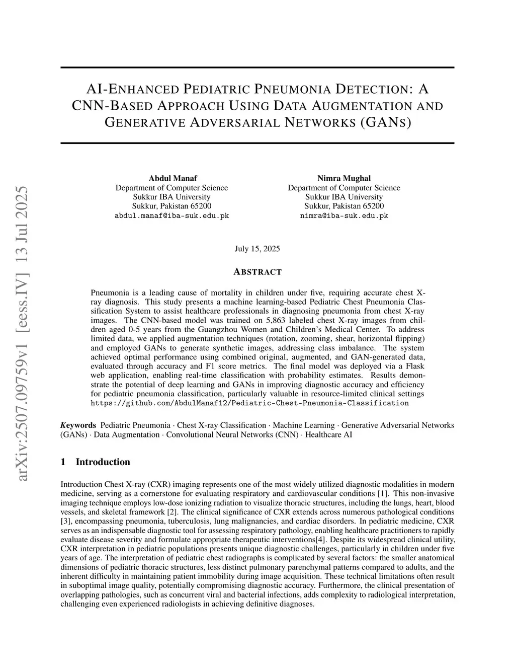 AI-Enhanced Pediatric Pneumonia Detection: A CNN-Based Approach Using Data Augmentation and Generative Adversarial Networks (GANs)