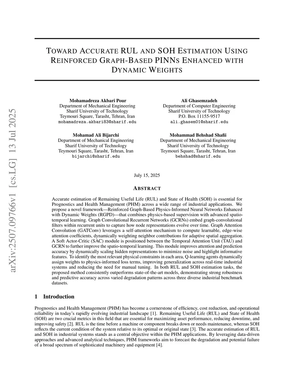Toward accurate RUL and SOH estimation using reinforced graph-based PINNs enhanced with dynamic weights