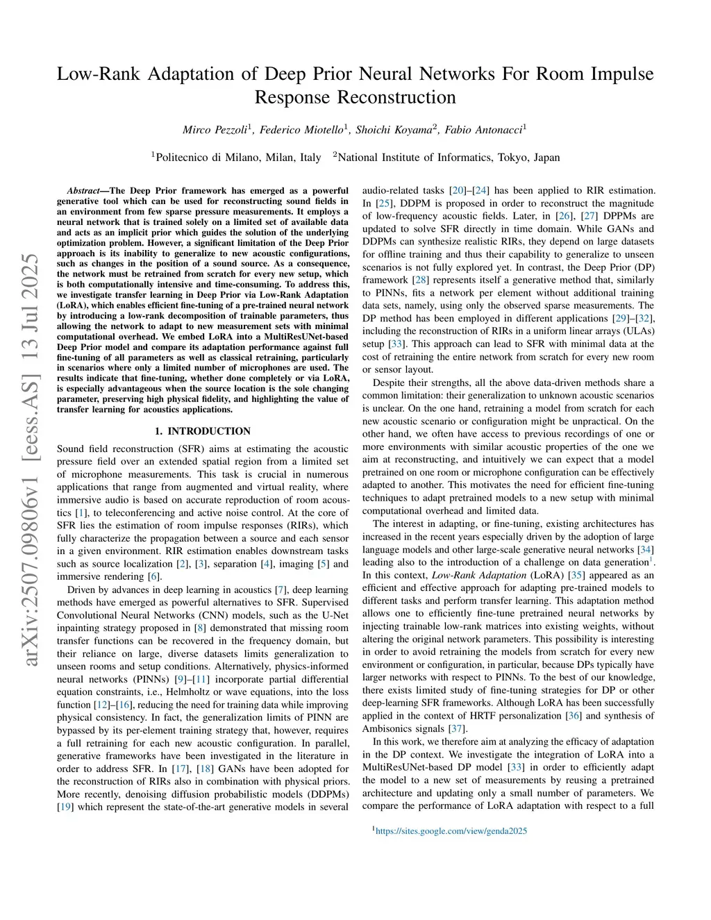 Low-Rank Adaptation of Deep Prior Neural Networks For Room Impulse Response Reconstruction