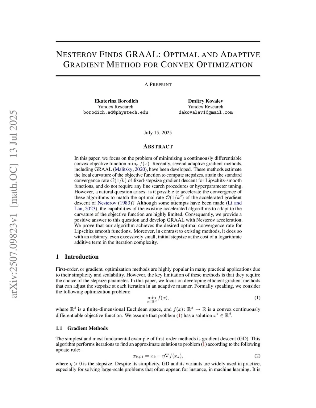 Nesterov Finds GRAAL: Optimal and Adaptive Gradient Method for Convex Optimization