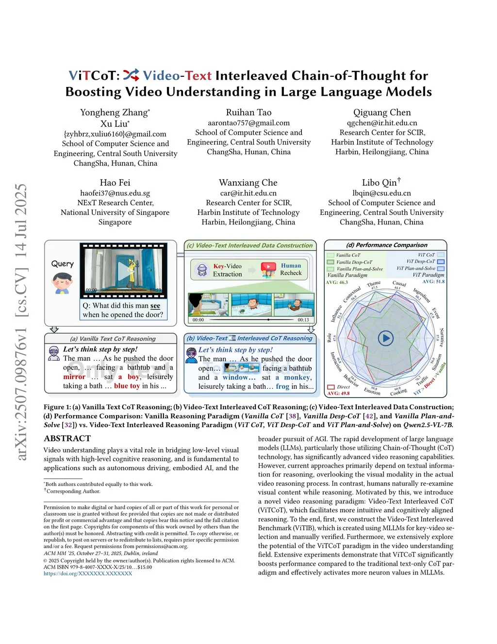 Video understanding plays a vital role in bridging low-level visual signals with high-level cognitive reasoning, and is fundamental to applications such as autonomous driving, embodied AI, and the broader pursuit of AGI. The rapid development of large language models (LLMs), particularly those utilizing Chain-of-Thought (CoT) technology, has significantly advanced video reasoning capabilities. However, current approaches primarily depend on textual information for reasoning, overlooking the visual modality in the actual video reasoning process. In contrast, humans naturally re-examine visual content while reasoning. Motivated by this, we introduce a novel video reasoning paradigm: Video-Text Interleaved CoT (ViTCoT), which facilitates more intuitive and cognitively aligned reasoning. To the end, first, we construct the Video-Text Interleaved Benchmark (ViTIB), which is created using MLLMs for key-video selection and manually verified. Furthermore, we extensively explore the potential of the ViTCoT paradigm in the video understanding field. Extensive experiments demonstrate that ViTCoT significantly enhances performance compared to the traditional text-only CoT paradigm and effectively activates more neuron values in MLLMs.