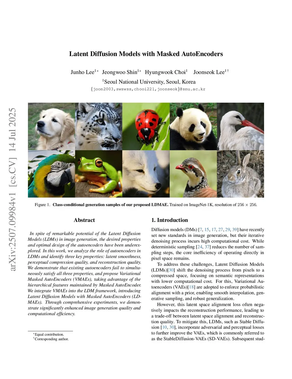 In spite of remarkable potential of the Latent Diffusion Models (LDMs) in image generation, the desired properties and optimal design of the autoencoders have been underexplored. In this work, we analyze the role of autoencoders in LDMs and identify three key properties: latent smoothness, perceptual compression quality, and reconstruction quality. We demonstrate that existing autoencoders fail to simultaneously satisfy all three properties, and propose Variational Masked AutoEncoders (VMAEs), taking advantage of the hierarchical features maintained by Masked AutoEncoder. We integrate VMAEs into the LDM framework, introducing Latent Diffusion Models with Masked AutoEncoders (LDMAEs). Through comprehensive experiments, we demonstrate significantly enhanced image generation quality and computational efficiency.