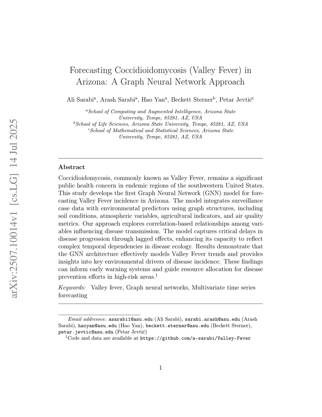 Forecasting Coccidioidomycosis (Valley Fever) in Arizona: A Graph Neural Network Approach