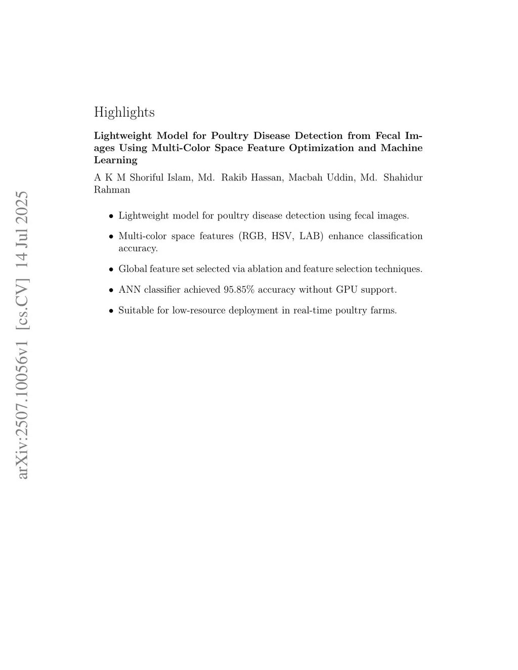 Lightweight Model for Poultry Disease Detection from Fecal Images Using Multi-Color Space Feature Optimization and Machine Learning