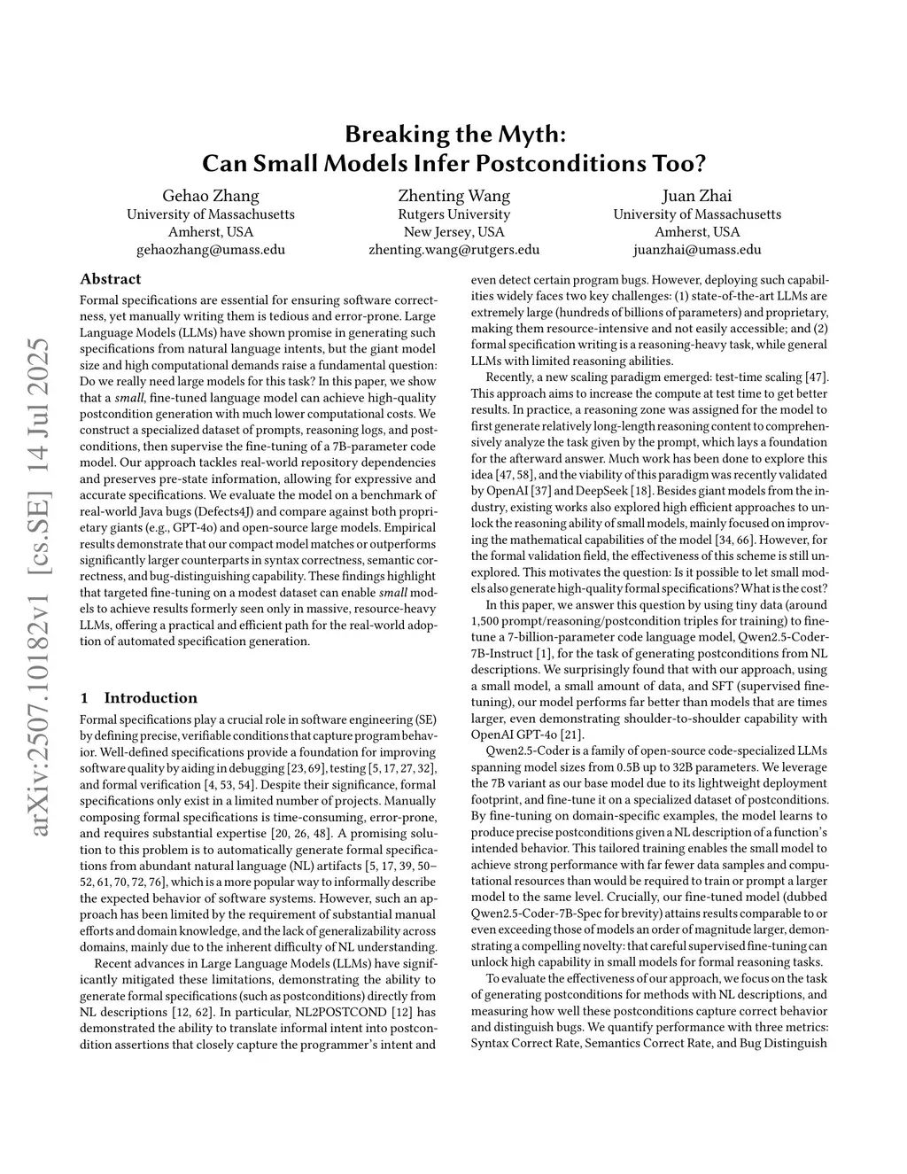 Breaking the Myth: Can Small Models Infer Postconditions Too?