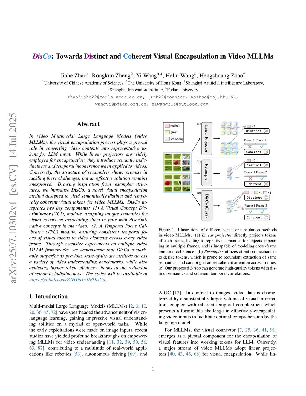 DisCo: Towards Distinct and Coherent Visual Encapsulation in Video MLLMs