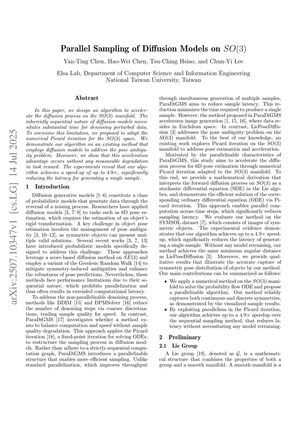 In this paper, we design an algorithm to accelerate the diffusion process on the manifold. The inherently sequential nature of diffusion models necessitates substantial time for denoising perturbed data. To overcome this limitation, we proposed to adapt the numerical Picard iteration for the space. We demonstrate our algorithm on an existing method that employs diffusion models to address the pose ambiguity problem. Moreover, we show that this acceleration advantage occurs without any measurable degradation in task reward. The experiments reveal that our algorithm achieves a speed-up of up to 4.9, significantly reducing the latency for generating a single sample.