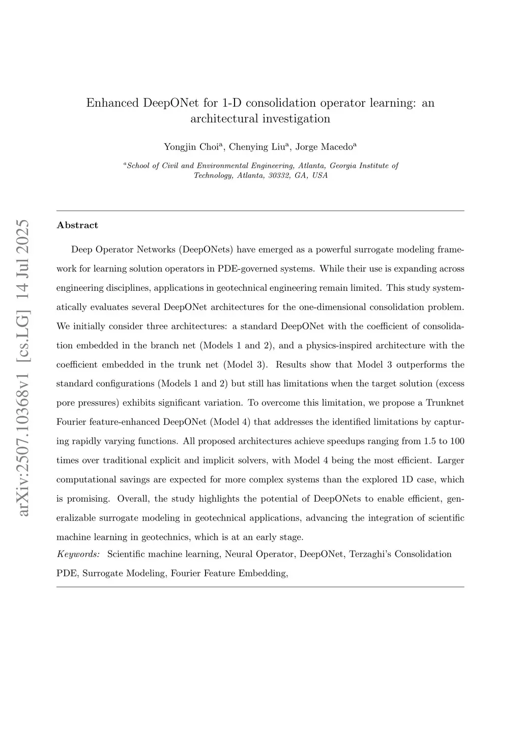 Enhanced DeepONet for 1-D consolidation operator learning: an architectural investigation
