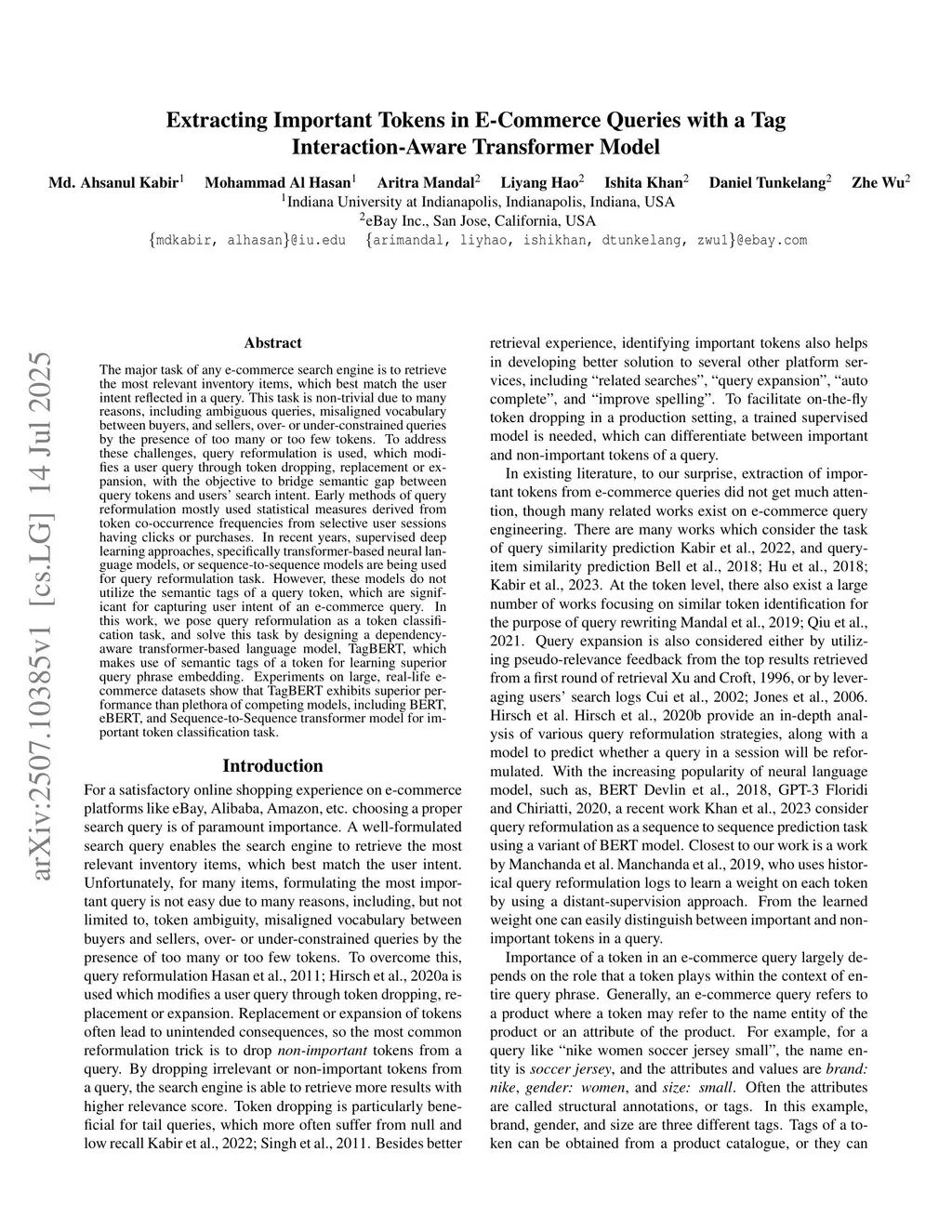 Extracting Important Tokens in E-Commerce Queries with a Tag Interaction-Aware Transformer Model