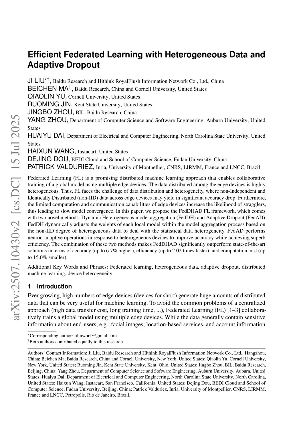 Efficient Federated Learning with Heterogeneous Data and Adaptive Dropout