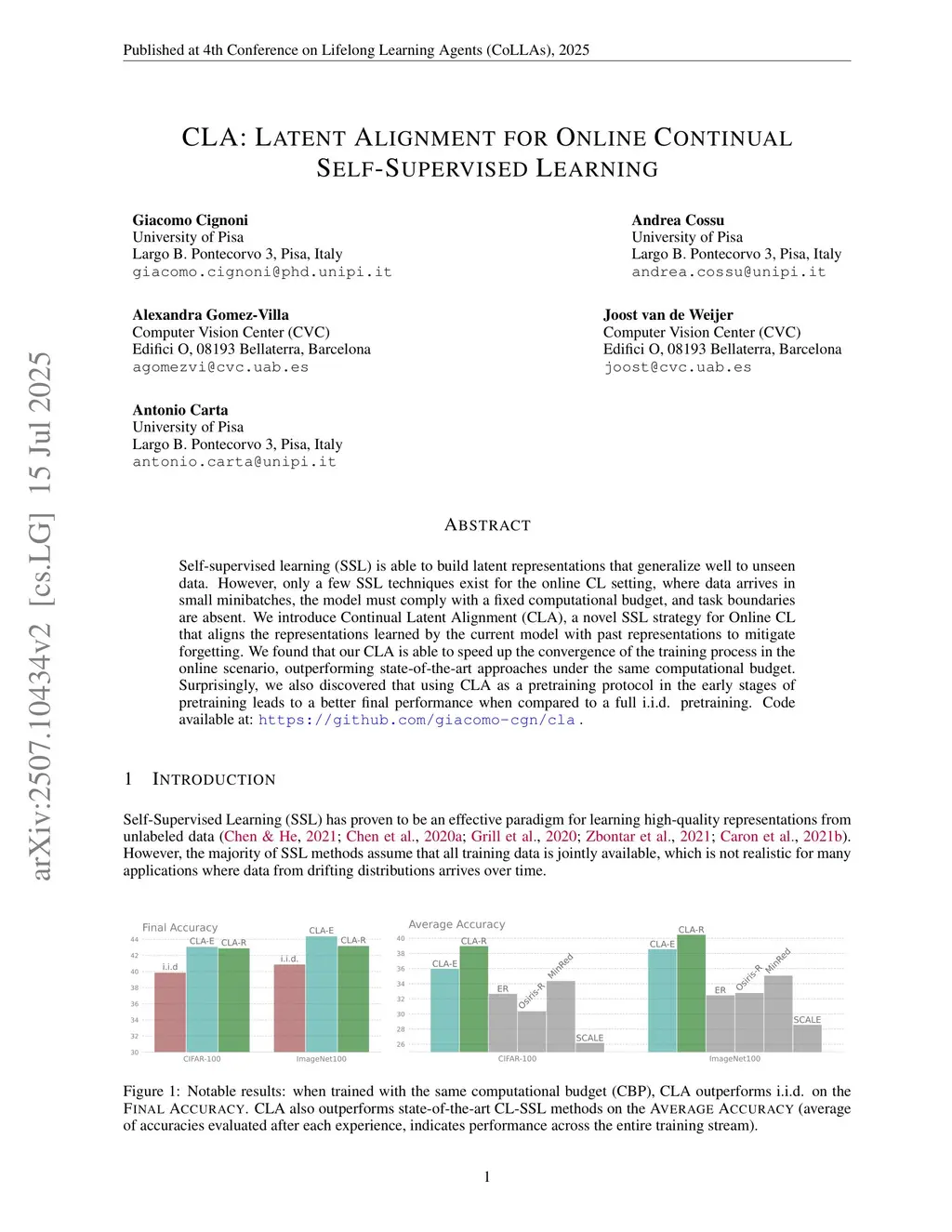 CLA: Latent Alignment for Online Continual Self-Supervised Learning