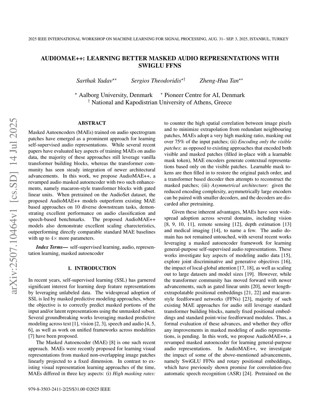 AudioMAE++: learning better masked audio representations with SwiGLU FFNs