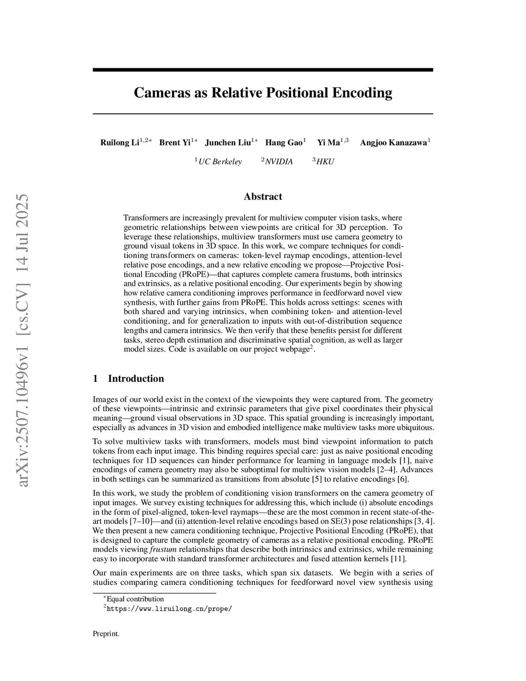 Transformers are increasingly prevalent for multi-view computer vision tasks, where geometric relationships between viewpoints are critical for 3D perception. To leverage these relationships, multi-view transformers must use camera geometry to ground visual tokens in 3D space. In this work, we compare techniques for conditioning transformers on cameras: token-level raymap encodings, attention-level relative pose encodings, and a new relative encoding we propose -- Projective Positional Encoding (PRoPE) -- that captures complete camera frustums, both intrinsics and extrinsics, as a relative positional encoding. Our experiments begin by showing how relative camera conditioning improves performance in feedforward novel view synthesis, with further gains from PRoPE. This holds across settings: scenes with both shared and varying intrinsics, when combining token- and attention-level conditioning, and for generalization to inputs with out-of-distribution sequence lengths and camera intrinsics. We then verify that these benefits persist for different tasks, stereo depth estimation and discriminative spatial cognition, as well as larger model sizes.