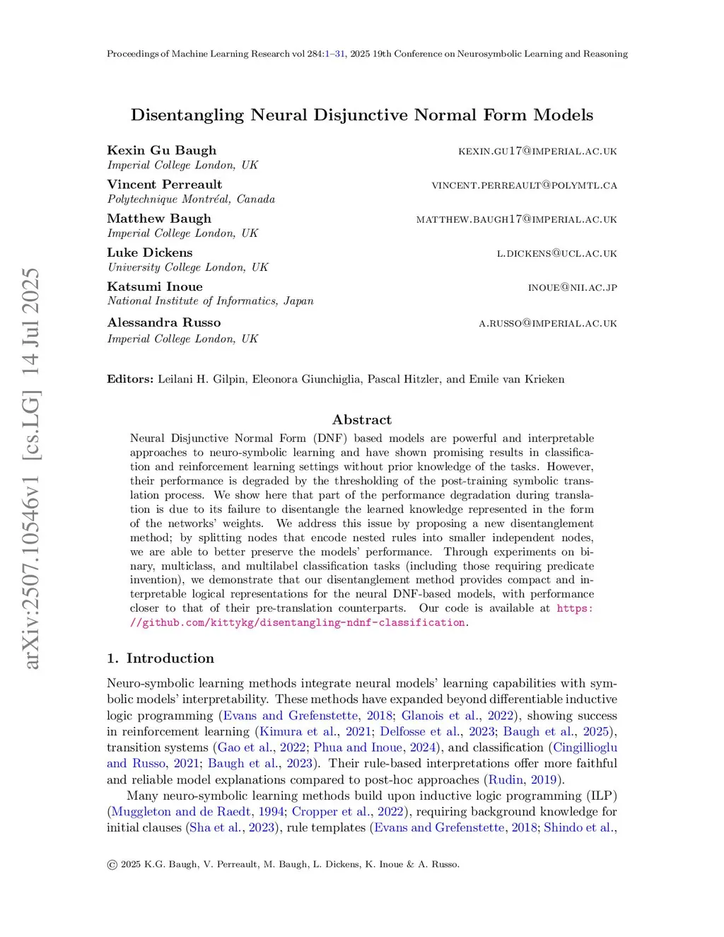 Disentangling Neural Disjunctive Normal Form Models