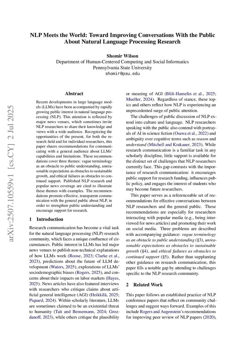 NLP Meets the World: Toward Improving Conversations With the Public About Natural Language Processing Research