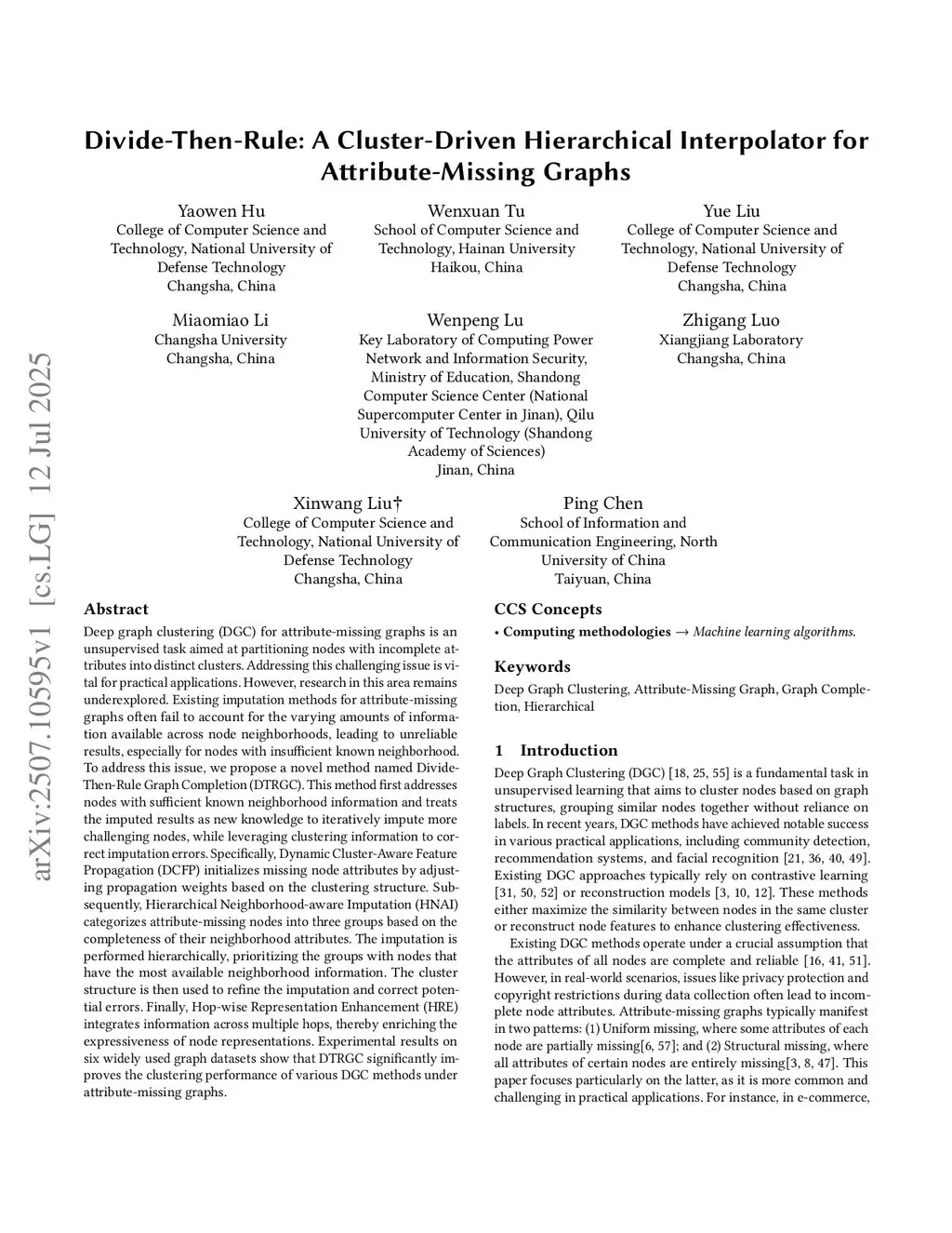 Divide-Then-Rule: A Cluster-Driven Hierarchical Interpolator for Attribute-Missing Graphs