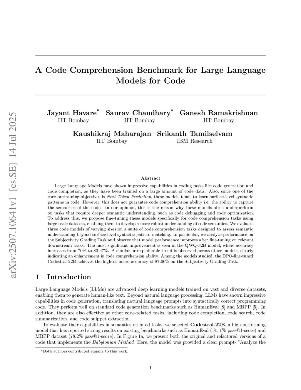 Large Language Models have shown impressive capabilities in coding tasks like code generation and code completion, as they have been trained on a large amount of code data. Also, since one of the core pretraining objectives is Next Token Prediction, these models tends to learn surface-level syntactic patterns in code. However, this does not guarantee code comprehension ability i.e. the ability to capture the semantics of the code. In our opinion, this is the reason why these models often underperform on tasks that require deeper semantic understanding, such as code debugging and code optimization. To address this, we propose fine-tuning these models specifically for code comprehension tasks using large-scale datasets, enabling them to develop a more robust understanding of code semantics. We evaluate three code models of varying sizes on a suite of code comprehension tasks designed to assess semantic understanding beyond surface-level syntactic pattern matching. In particular, we analyze performance on the Subjectivity Grading Task and observe that model performance improves after fine-tuning on relevant downstream tasks. The most significant improvement is seen in the QWQ-32B model, where accuracy increases from 70% to 83.47%. A similar or explainable trend is observed across other models, clearly indicating an enhancement in code comprehension ability. Among the models studied, the DPO-fine-tuned Codestral-22B achieves the highest micro-accuracy of 87.66% on the Subjectivity Grading Task.