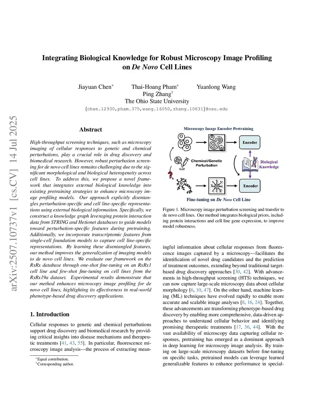 Integrating Biological Knowledge for Robust Microscopy Image Profiling on De Novo Cell Lines