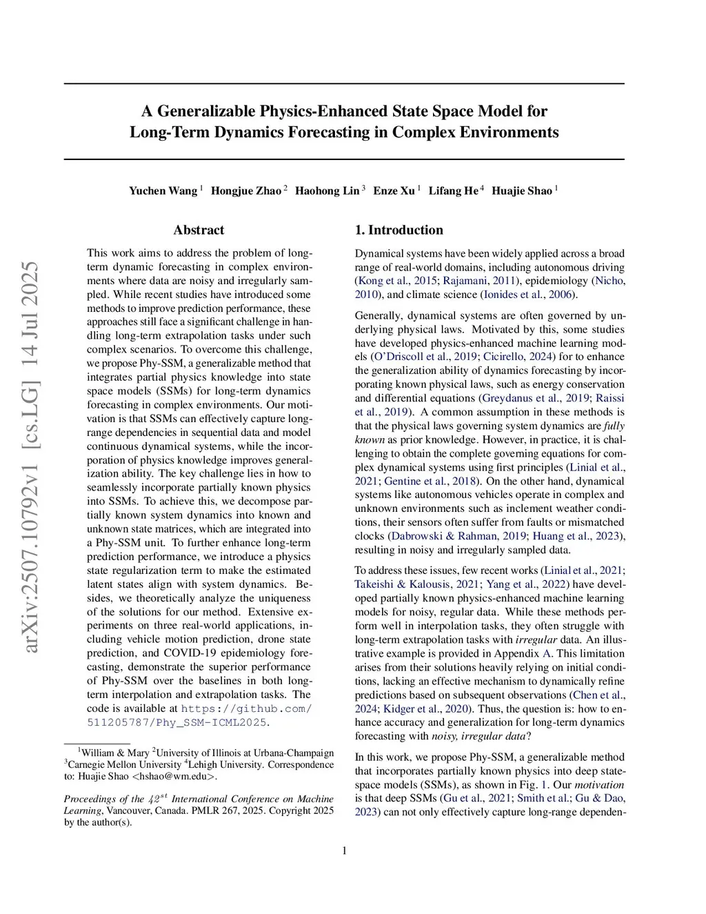 A Generalizable Physics-Enhanced State Space Model for Long-Term Dynamics Forecasting in Complex Environments