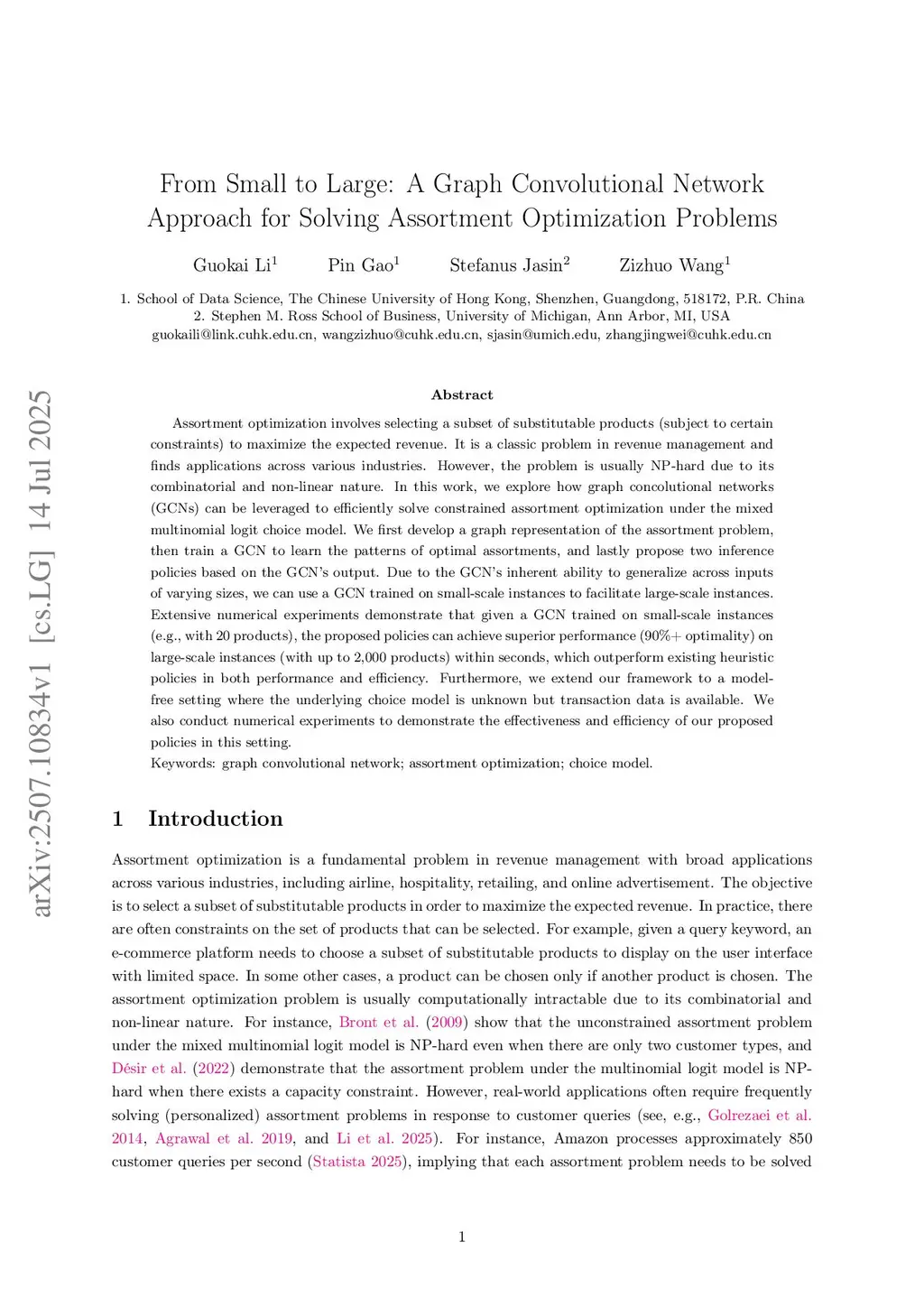 From Small to Large: A Graph Convolutional Network Approach for Solving Assortment Optimization Problems