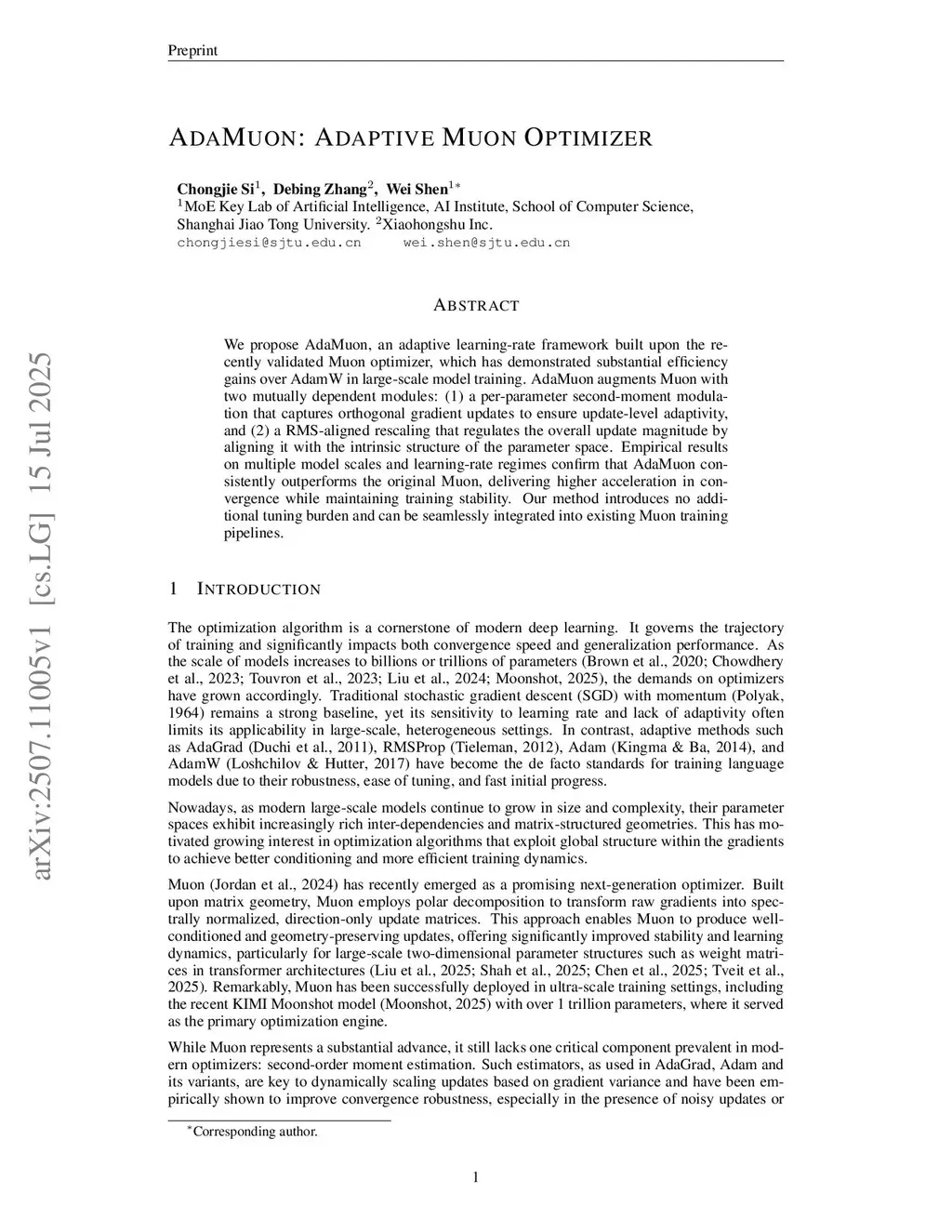 AdaMuon: Adaptive Muon Optimizer