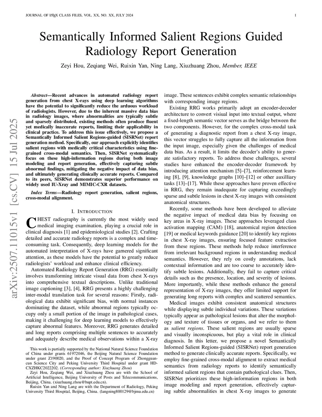 Semantically Informed Salient Regions Guided Radiology Report Generation