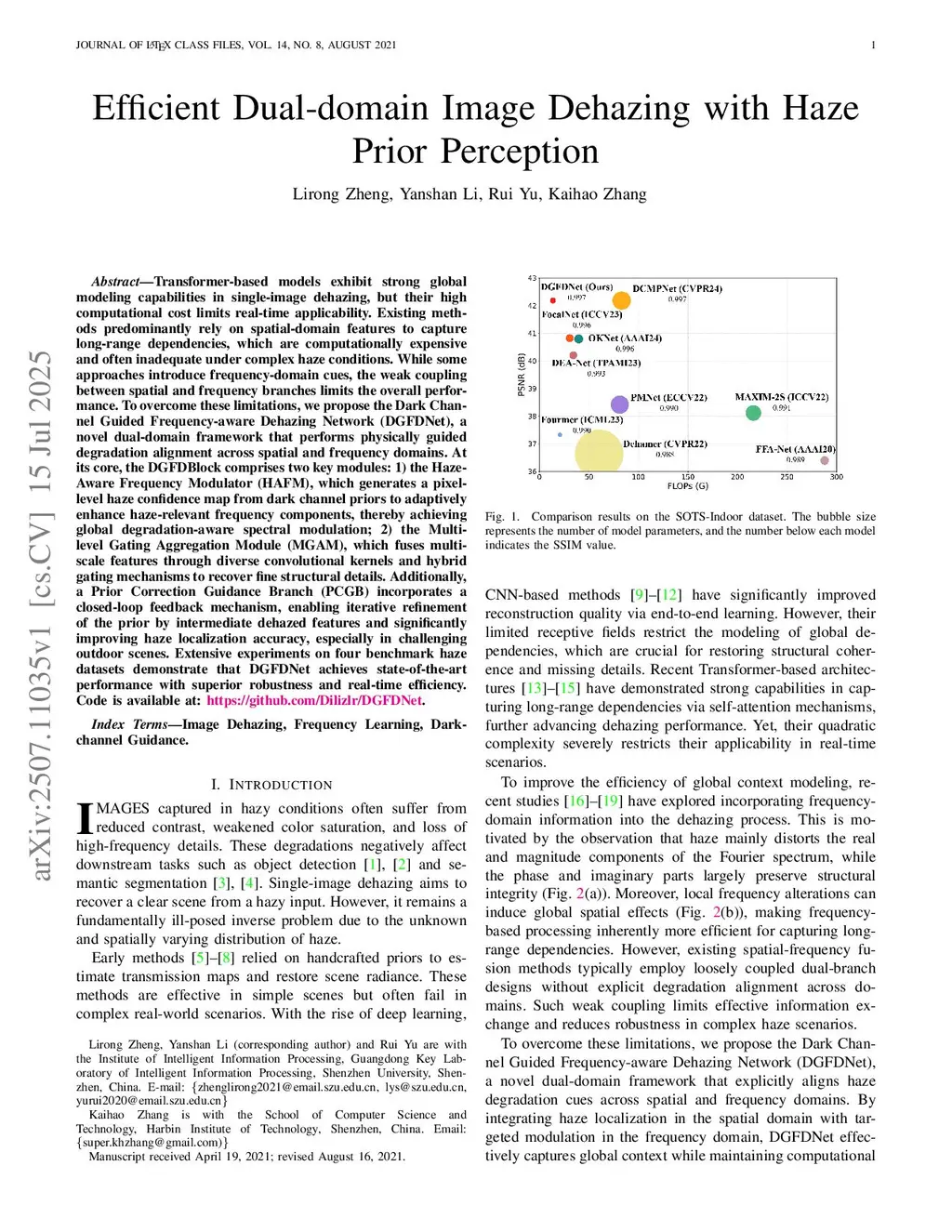 Efficient Dual-domain Image Dehazing with Haze Prior Perception