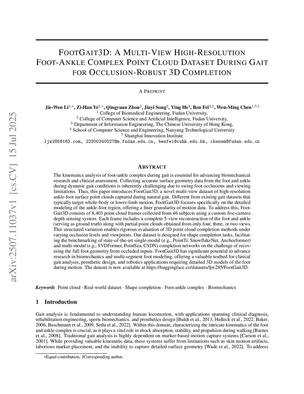 A Multi-View High-Resolution Foot-Ankle Complex Point Cloud Dataset During Gait for Occlusion-Robust 3D Completion