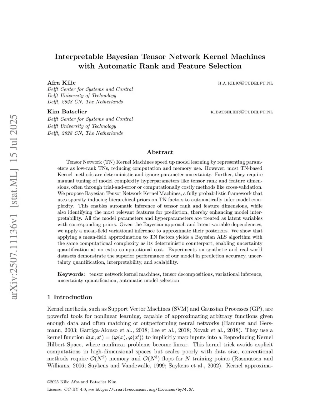 Interpretable Bayesian Tensor Network Kernel Machines with Automatic Rank and Feature Selection