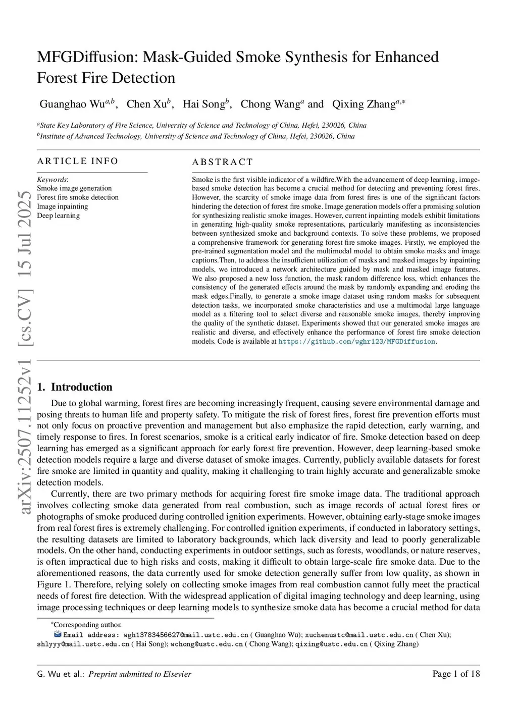 MFGDiffusion: Mask-Guided Smoke Synthesis for Enhanced Forest Fire Detection
